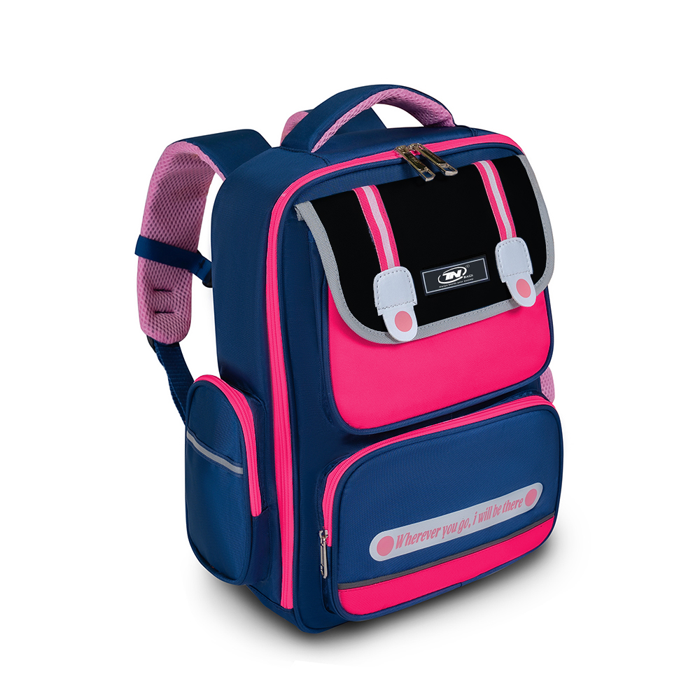 -Balo học sinh TNBags Smart Pink có dáng đứng cứng cáp nhưng lại không hề thô bởi công nghệ may tinh tế, tỉ mỉ, khóa kéo trơn trượt tạo nên nét đẹp của chiếc balo