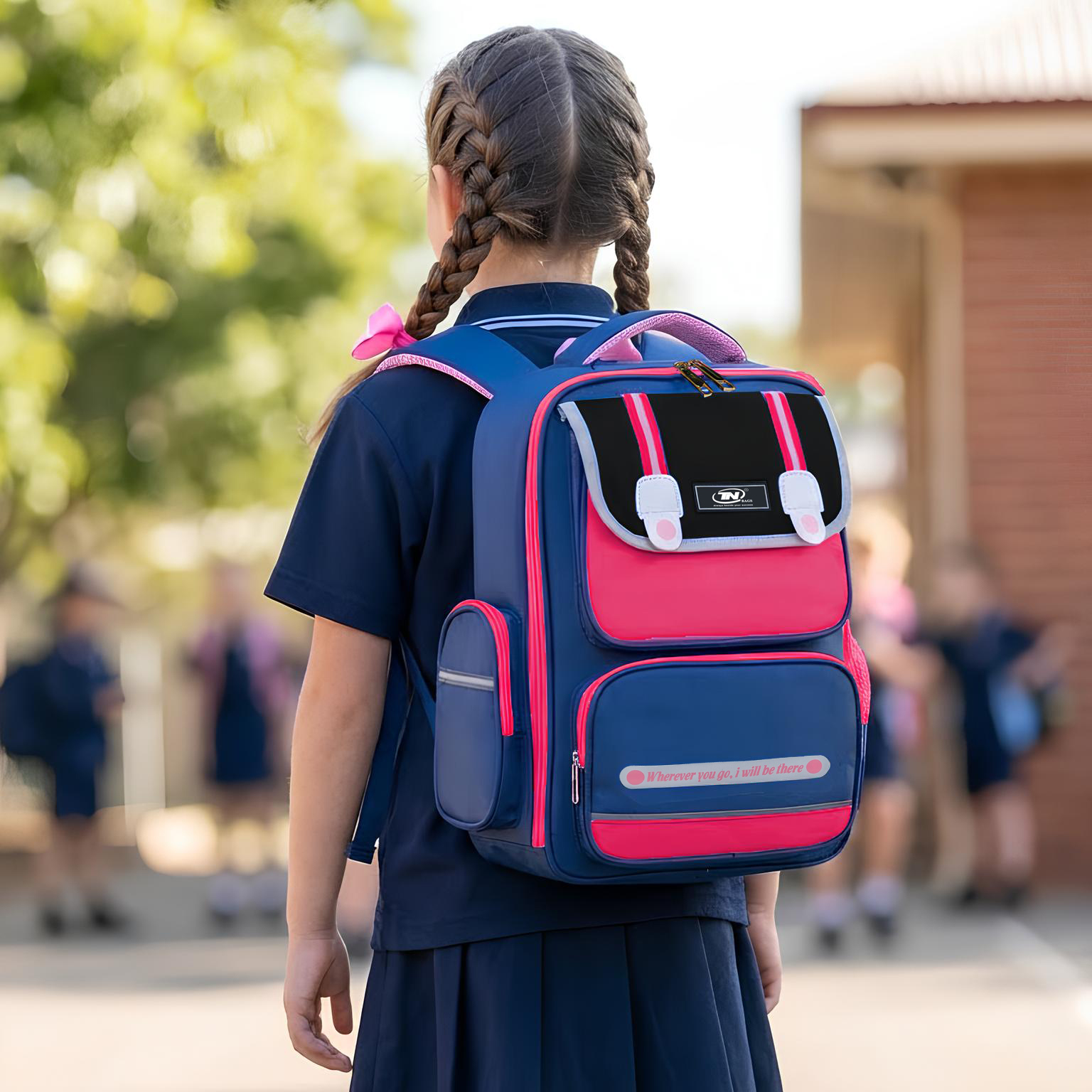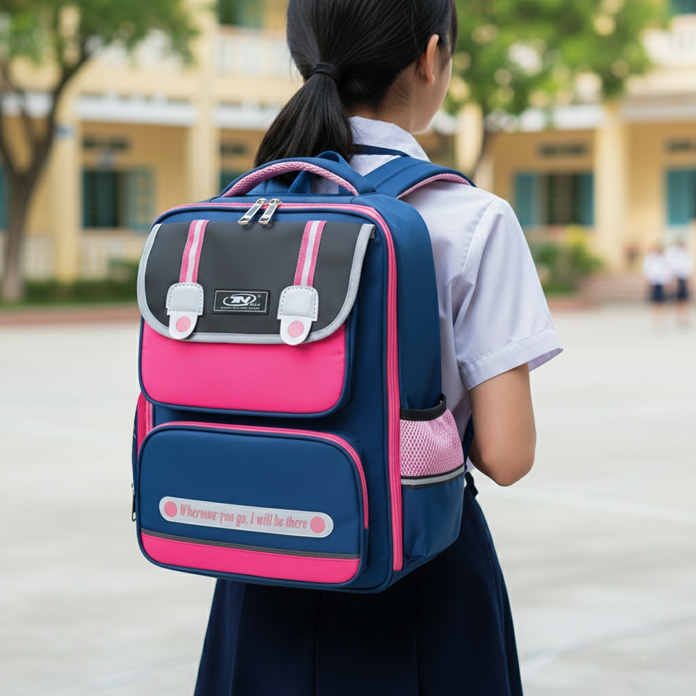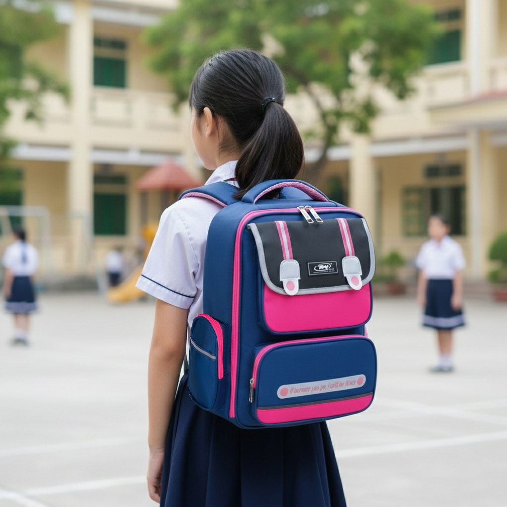 Sự kết hợp hoàn hảo khi pha trộn giữa gam màu hồng và màu xanh dương giúp cho balo tạo được hiệu ứng nổi bật, bắt mắt,dễ thương khi các bé gái mang chúng và thu hút người nhìn dù khoảng cách từ xa, ba mẹ có thể dễ dàng tìm ra được vị trí của các bé một cách dễ dàng và nhanh chóng.