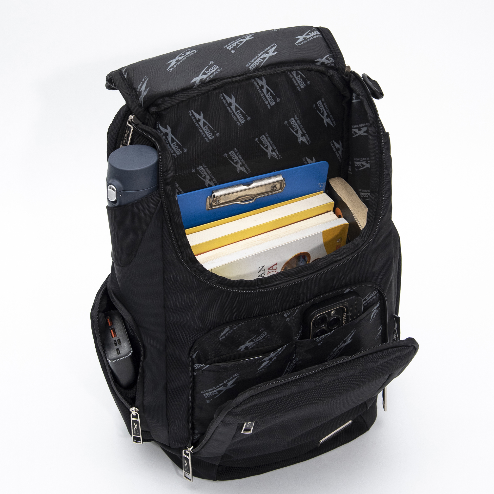 Bên trong balo được phối lót 210 cao cấp in logo Xbags , vừa tăng độ bền, vừa tạo điểm nhấn thương hiệu tinh tế. Hệ thống khoá kéo kim loại chắc chắn, vận hành trơn tru, chống rỉ sét, đảm bảo độ bền lâu dài khi sử dụng thường xuyên.